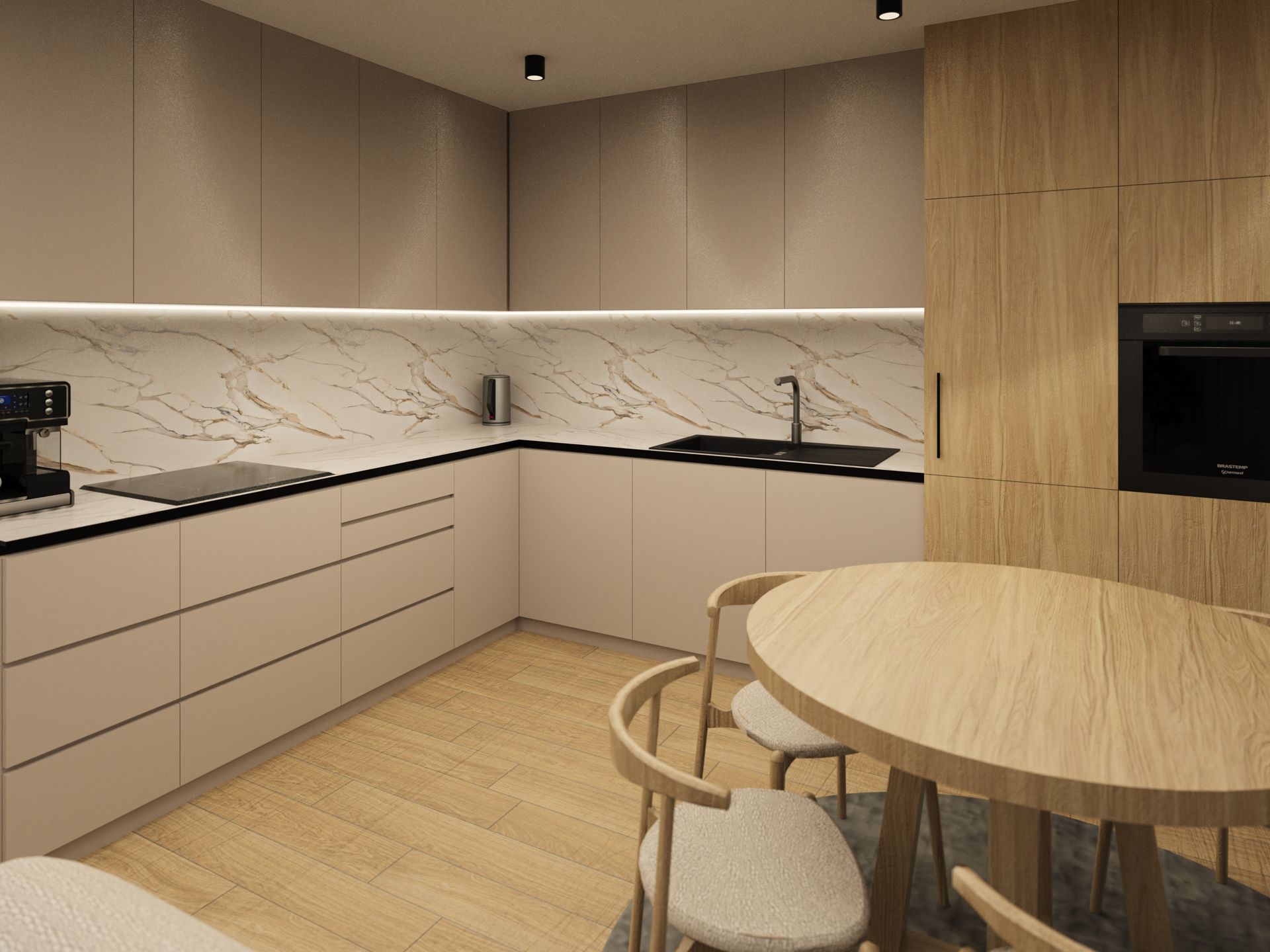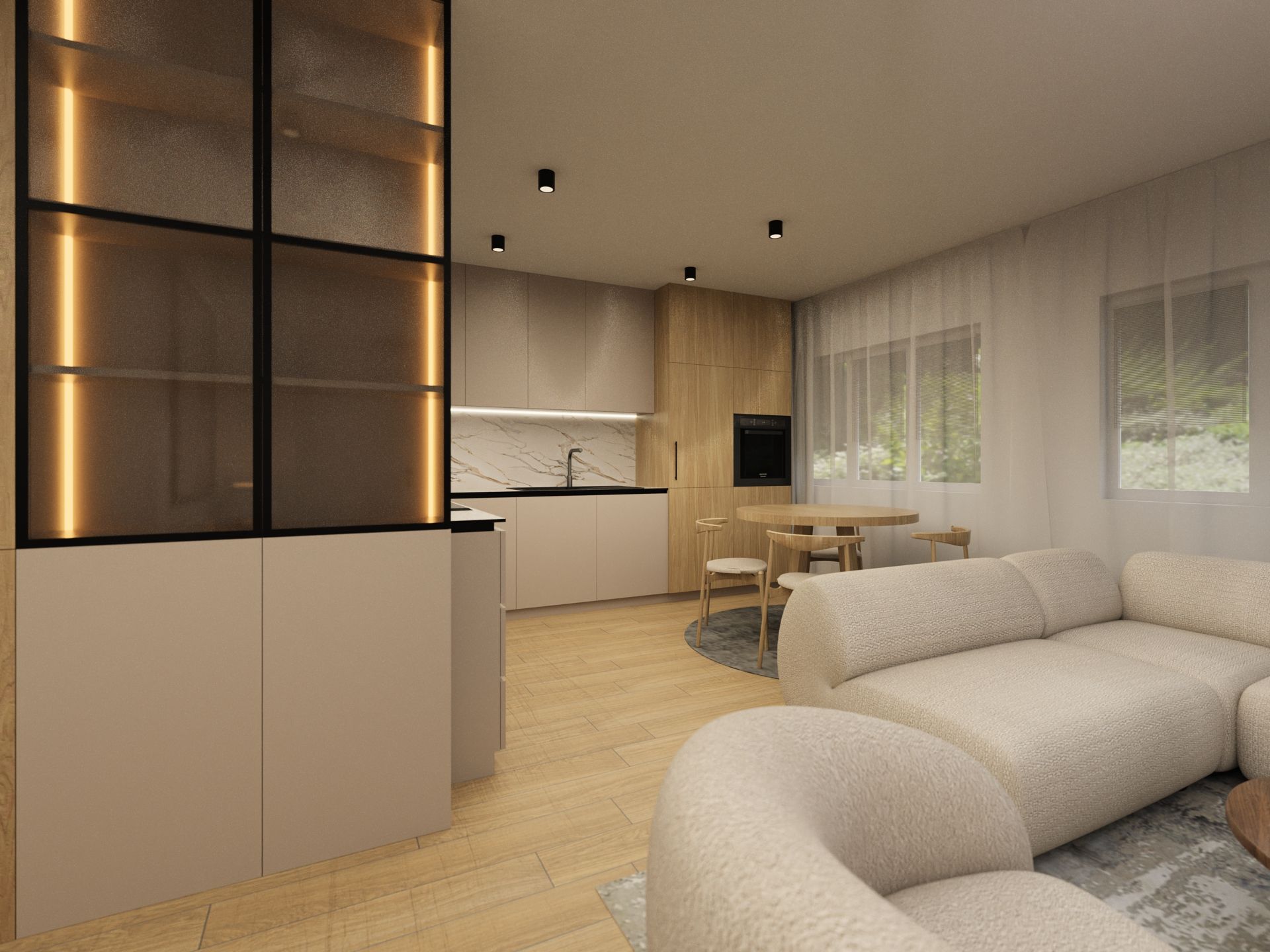 Malou, ale šikovnou zmenou dispozície bytu v klasickom panelovom bytovom dome sme vytvorili vzdušný a moderný priestor pre potreby mladej dvojice. Použitím dreva a teplých prírodných odtieňov sme docielili útulnosť a príjemný pocit domova, do ktorého sa majitelia budú radi vracať z rušného prostredia mesta. Rekonštrukcia staršieho bytu so sebou vždy prináša výzvy, ale zároveň aj príležitosť dať interiéru nový nádych, zladené prvky a dostatočný priestor nielen estetický, ale najmä funkčný.